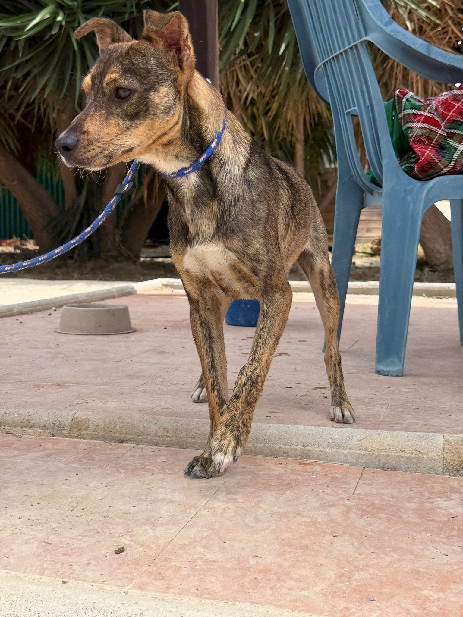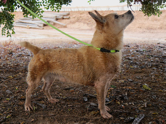FELIPE porte sur lui les traces d’un passé douloureux. Lorsqu’il a été trouvé dans un village, une corde enroulée autour de son cou témoignait de la dureté de la vie qu’il avait connue jusque-là. À son arrivée au refuge, il était complètement terrifié, prisonnier de sa peur et incapable de faire confiance. Avec du temps, de la patience et beaucoup de douceur, les bénévoles ont su l’accompagner pas à pas. Cependant les colliers et harnais lui rappellent ses traumatismes et nécessitent une approche extrêmement douce et progressive.