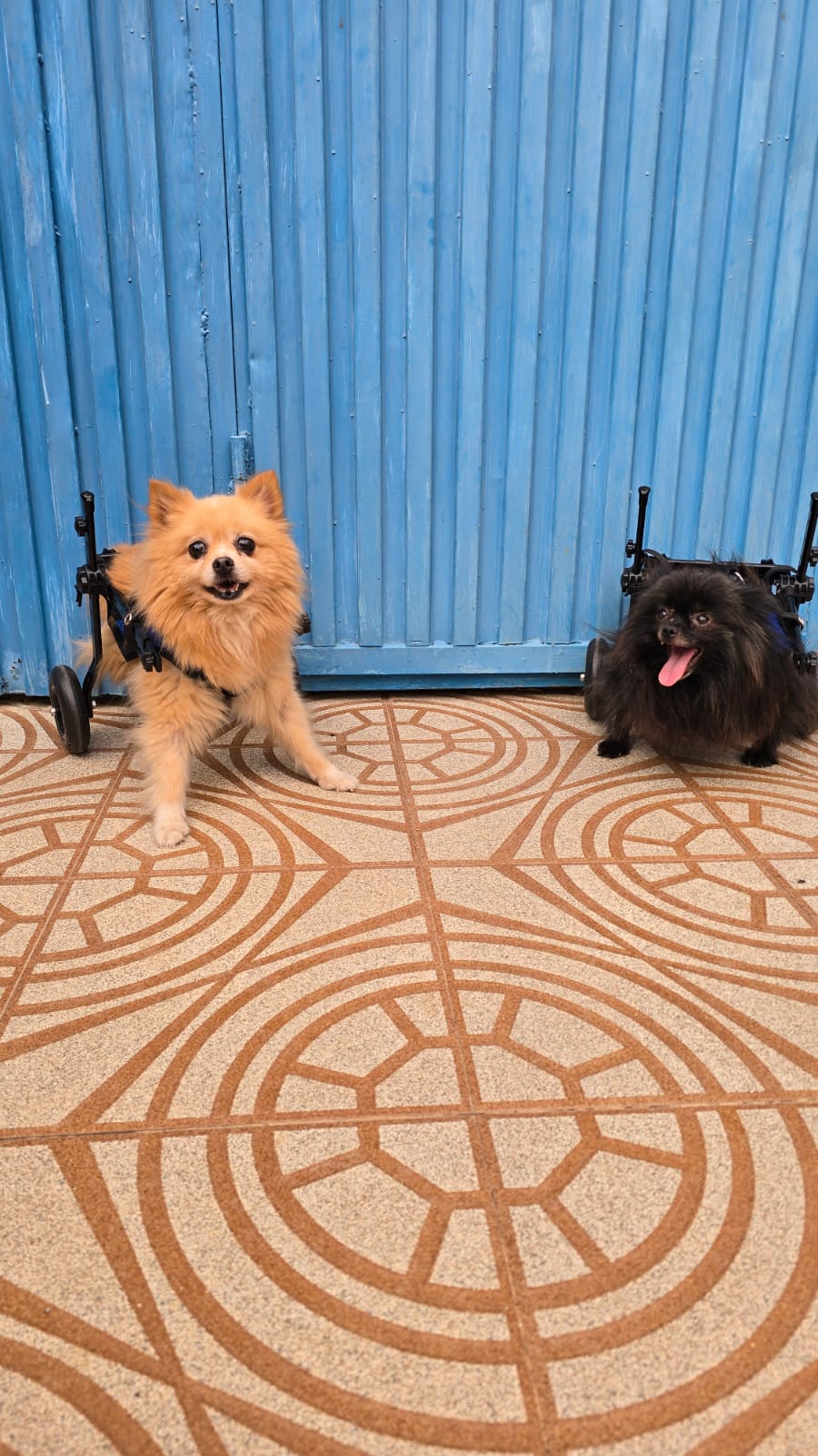 Alma et Hope sont deux femelles cédées par leurs éleveurs après avoir été exploitées toute leur vie pour la reproduction. Leurs petits leur ont été arrachés, encore et encore, simplement pour en tirer un maigre profit. Aujourd’hui, elles portent les séquelles de ces années d'abus, toutes deux souffrent d’une luxation des rotules arrière de naissance. Une opération serait possible, mais elle impliquerait de leur casser les os et de poser des plaques, un processus long, douloureux et sans garantie de guérison. C’est pourquoi elles vivent désormais avec leurs fauteuils roulants, qui leur permettent de profiter d’une vie paisible, heureuse et sans douleur