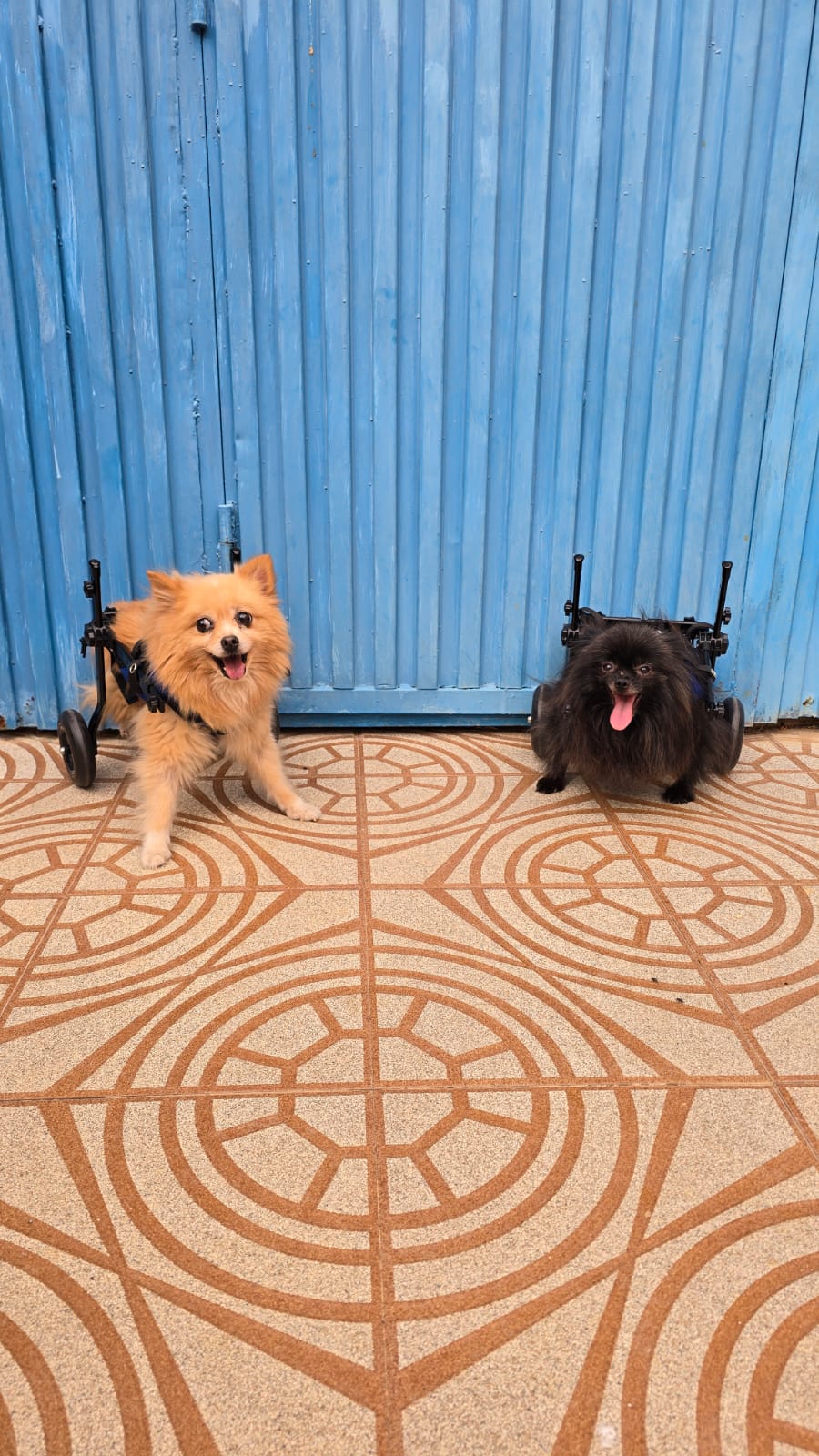 Alma et Hope sont deux femelles cédées par leurs éleveurs après avoir été exploitées toute leur vie pour la reproduction. Leurs petits leur ont été arrachés, encore et encore, simplement pour en tirer un maigre profit. Aujourd’hui, elles portent les séquelles de ces années d’abus, toutes deux souffrent d’une luxation des rotules arrière de naissance. Une opération serait possible, mais elle impliquerait de leur casser les os et de poser des plaques, un processus long, douloureux et sans garantie de guérison. C’est pourquoi elles vivent désormais avec leurs fauteuils roulants, qui leur permettent de profiter d’une vie paisible, heureuse et sans douleur.