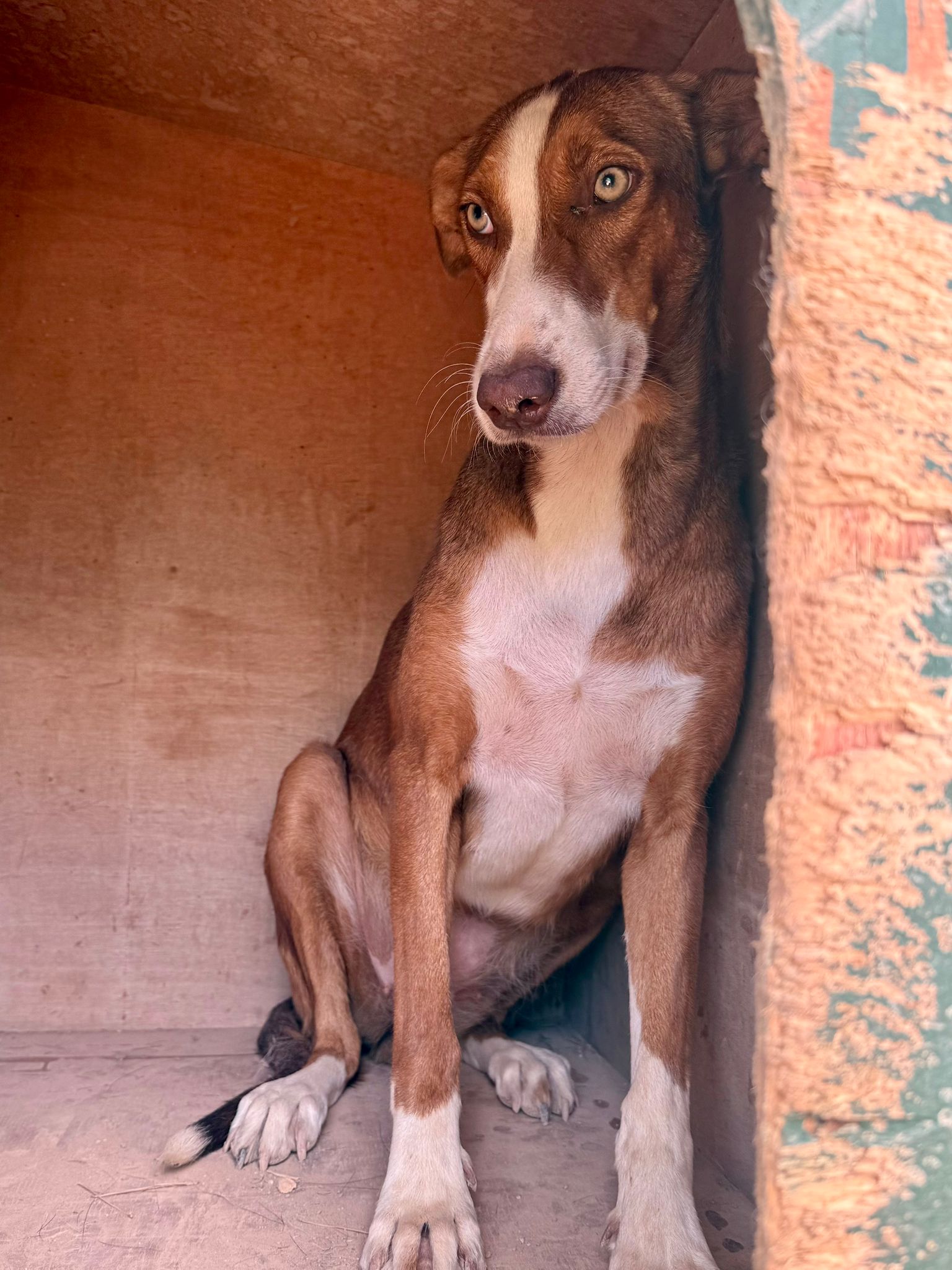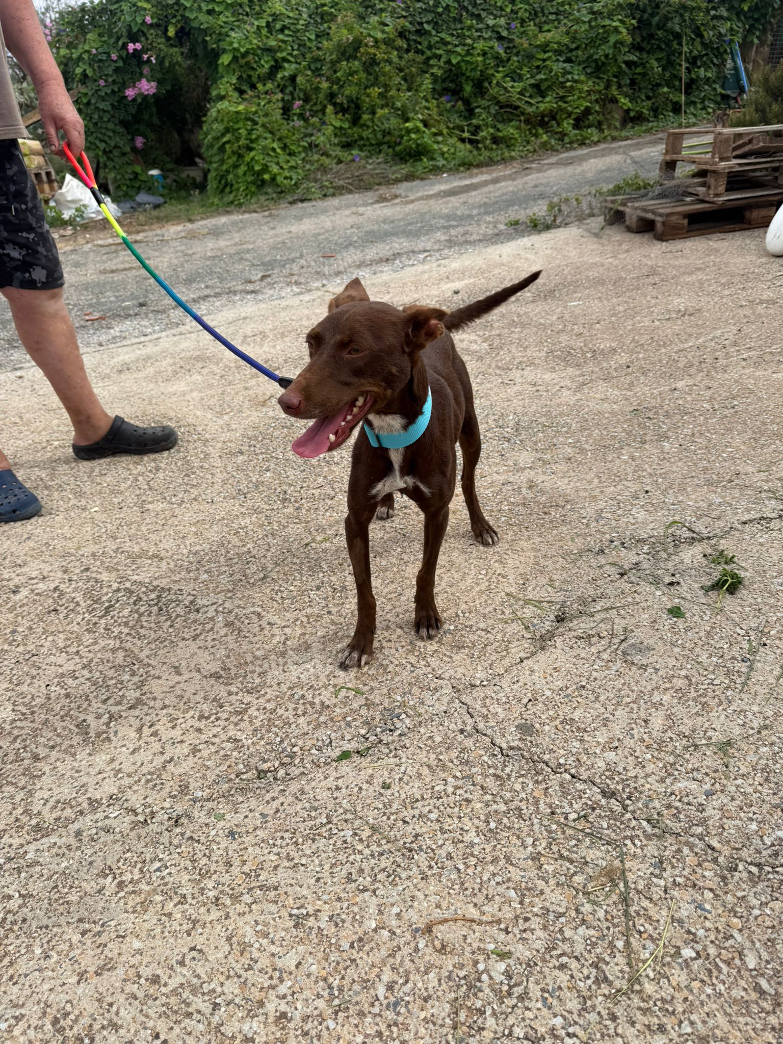 PERLA est une chienne gentille, douce et calme, bien qu’encore un peu sur la réserve, elle est un peu craintive au premier abord. Elle n’a jamais eu de tendresse et d’amour, chaque jour elle apprend à faire un peu plus confiance et c’est un amour, elle apprécie les câlins, elle est très gentille et sociable. Elle a simplement besoin d’une famille patiente, prête à lui offrir du temps, de la sécurité et beaucoup d’affection. Contrairement à certains podencos souvent très actifs, PERLA est une chienne calme. Elle rêve d’un foyer tranquille où partager des moments de douceur, de sérénité et de câlins.